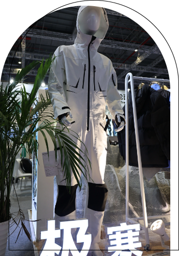 較往季展會,我司本季展會突出了戶外功能板塊。以羽絨板塊為主,戶外板塊為重。