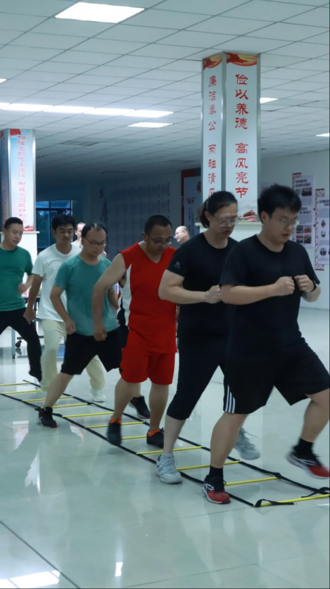 每周五晚上,在寬敞明亮的活動室內,員工們在專業教練的指導下,伴隨著音樂的節奏,調動起全身肌肉,在這個熱辣滾燙的夏天,點燃運動激情,不一會便暴汗揮灑,直接和堆堆肉say goodbye!HIIT讓大家在享受運動樂趣的同時,收獲健康體態與自信笑容,大家都說這個運動很city!